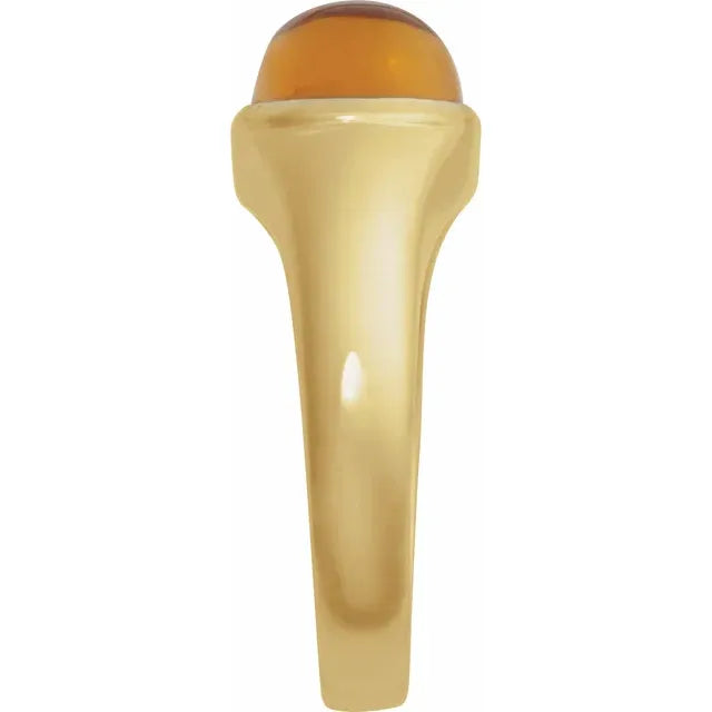 A masterclass in "quiet power," this ring features a 10x8mm natural cabochon citrine seamlessly flush-set into a heavy 14k yellow gold band. Rather than sitting atop the gold, the citrine is nestled deep within it, creating a smooth, tactile surface that feels like a sun-warmed stone found on a Mediterranean shore.